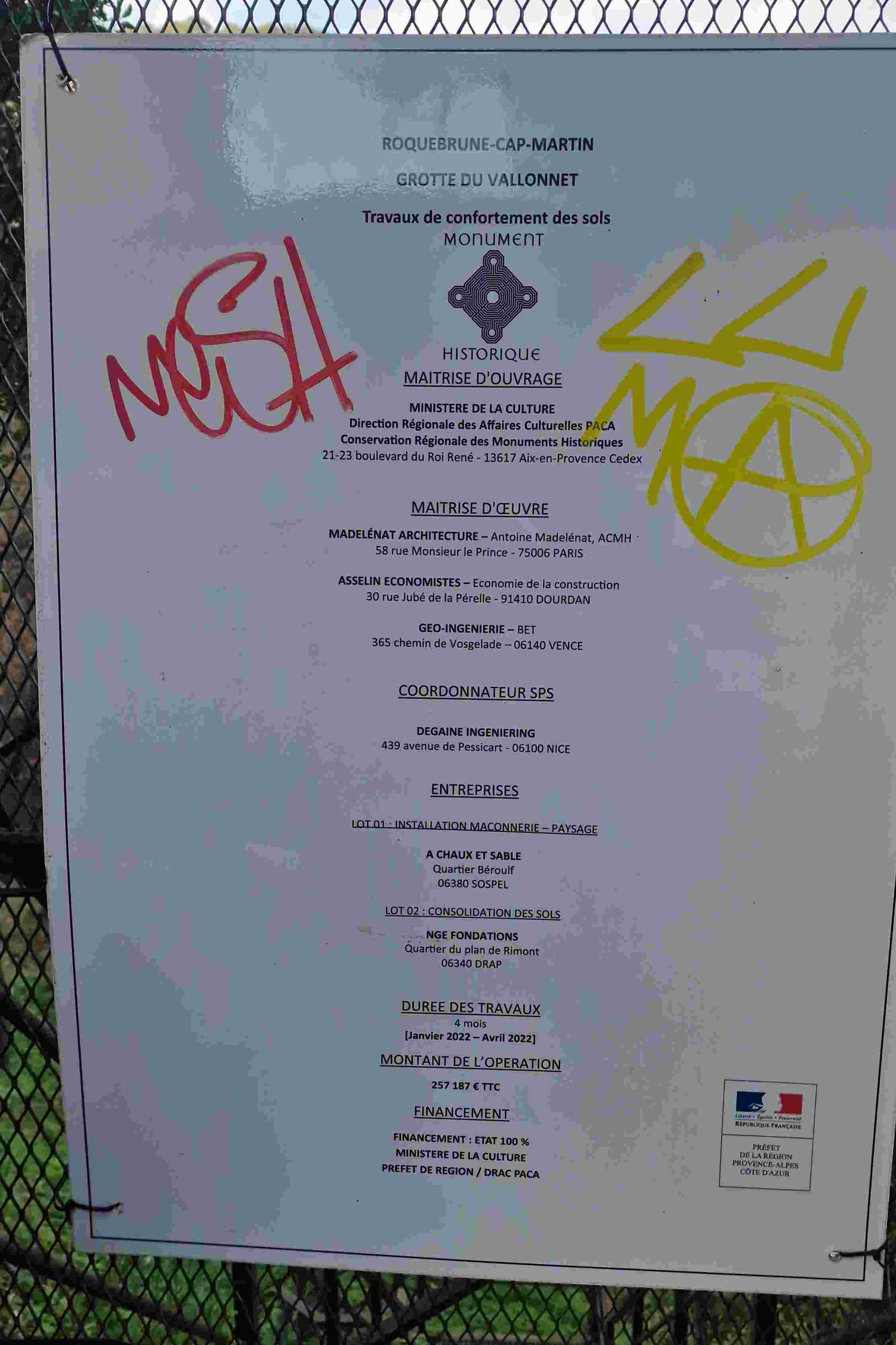 Opvallend genoeg leidt de grot een onopvallend bestaan. Via Google Maps weet je waar de grot zich ongeveer moet bevinden en als je een beetje rond die plek loopt, kom je terecht op de Chemin de Menton. Daar kom je op een gegeven moment aan de oostzijde een hekje tegen met een groot bord erop. Dat is het begin van het paadje naar de grot, je kunt met een beetje mazzel de ingang van de grot door de begroeing zien.